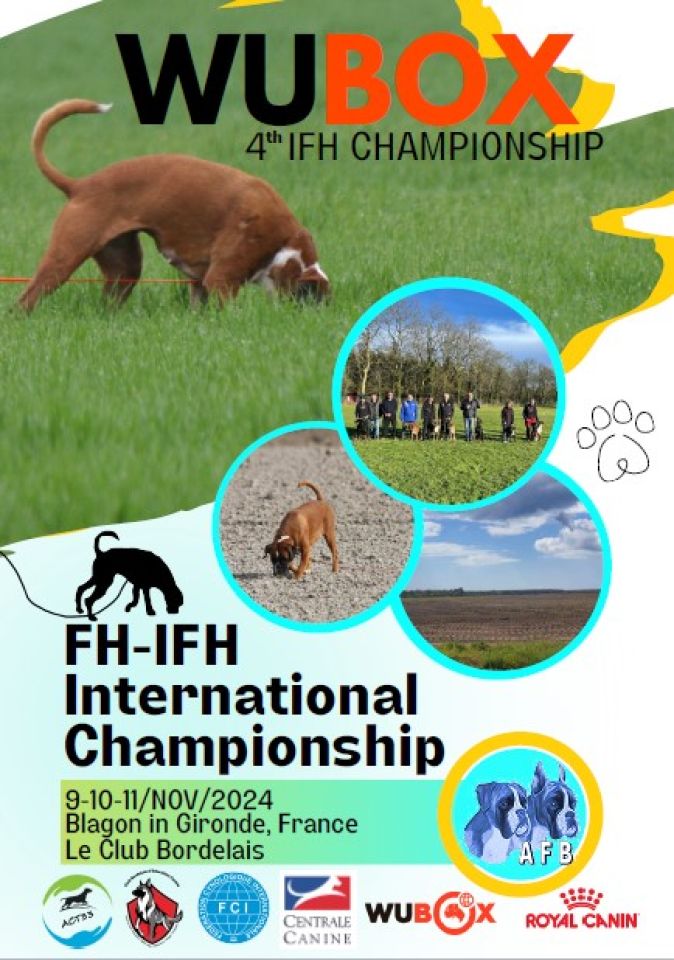 The 2024 WUBOX IFH Championship, organized by the AFB (Association Française du Boxer) and hosted by Le Club Bordelais, will take place from November 9th to 11th in Blagon in Gironde/France.