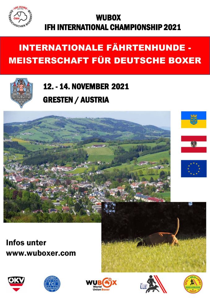 The WUBOX IFH Championship 2021, organized by the ÖBK Austrian Boxer Club and hosted by the ÖRV Austrian Dog Club, will take place from November 12th to 14th, in Gresten / Lower Austria.