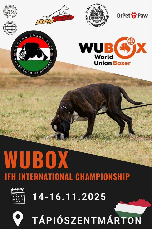 The 5th WUBOX IFH Championship 2025, organized by the Boxer Club of Hungary, will take place from November 14th to 16th in Kincsem Lovaspark, Tápiószentmárton, 2711 Soregi út 1(near Budapest).
